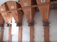 Uvnitř mlýna je stále původní technologie. Například pračka a loupačka obilí a mlýnské kameny na špaldovou mouku.