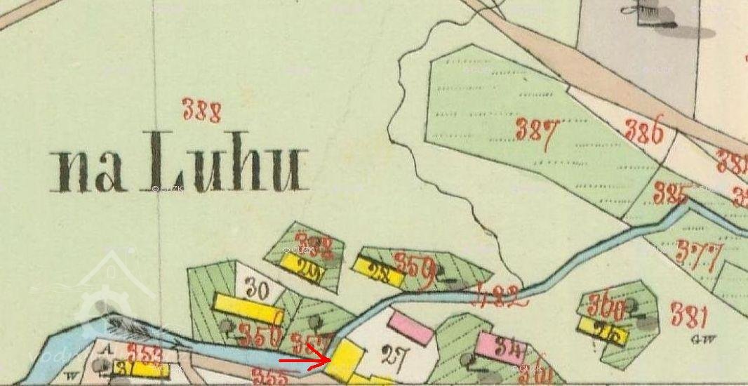 Popis1930: 1 kolo na svrchní vodu, hltnost 0,163 m3/s, spád 4,4 m, výkon 7,2 HP