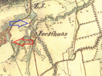 "….jedno staveni velké, čelem k rybníku, sloužící za mlýnici a byt, k němuž přilepeno druhé s chlévy, stojící souběžně s hrázi. Naproti nim, dovnitř vsi směrem, opět dvě budovy taktéž ve tvaru písmene L vystavěné` jedna z cihel pálených a druhá z kamene vystavěna jest, jedna střechu z tašek pálených, druhá však ještě doškovou má. První slouží k úschově nářadí a vozů, zatímco druhá co stodola. Celý objekt kamennou zdi ohrazen, se třemi vjezdy, z nichž dva k zanášce z hráze vedou a třetí z pole přímo do stodoly. K mlýnu patři mnoho poli a luk.."