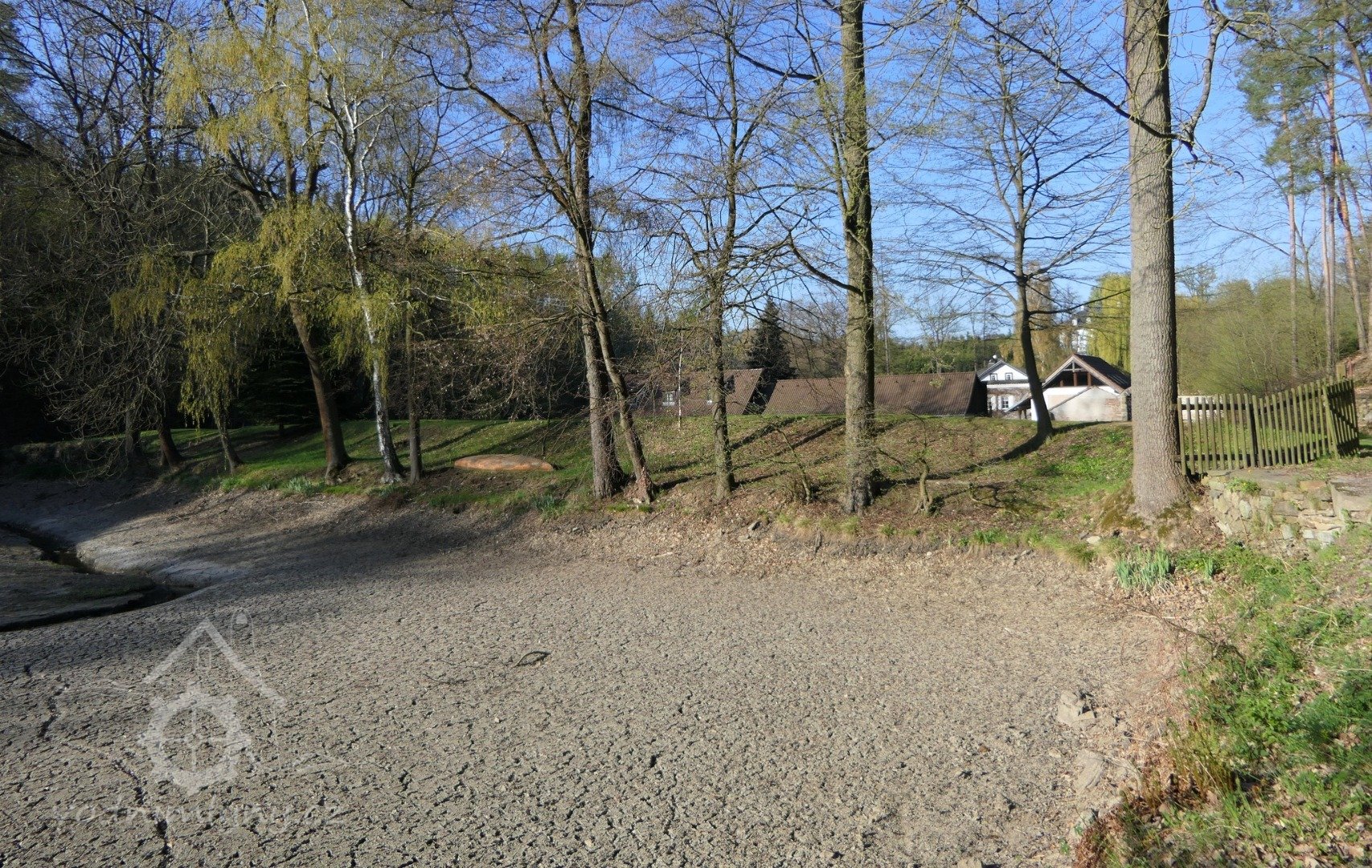 Rybník čp. 173 před mlýnem jest na suchu, velká voda v r.1888 jez rybníka při levé straně čelní hráze odplavila.