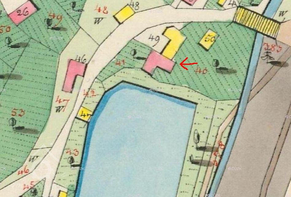Jihozápadně od zámku pod rybníkem