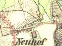 Mlýn je zobrazen na I. vojenském mapování – josefské z let 1764-1768 a 1780-1783. Skica a otisk stabilního katastru – Josef Tauer, nespalná budova se třemi dřevěným přístavky nalepenými na hlavní budovu, jedno kolo, na originální mapě je zakreslený náhon vedoucí pod cestou.