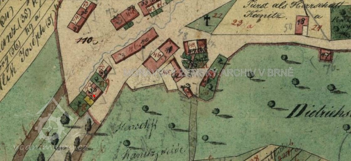 Pěkně dochovaný vodní mlýn naposledy přestavěný v roce 1937.