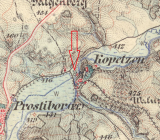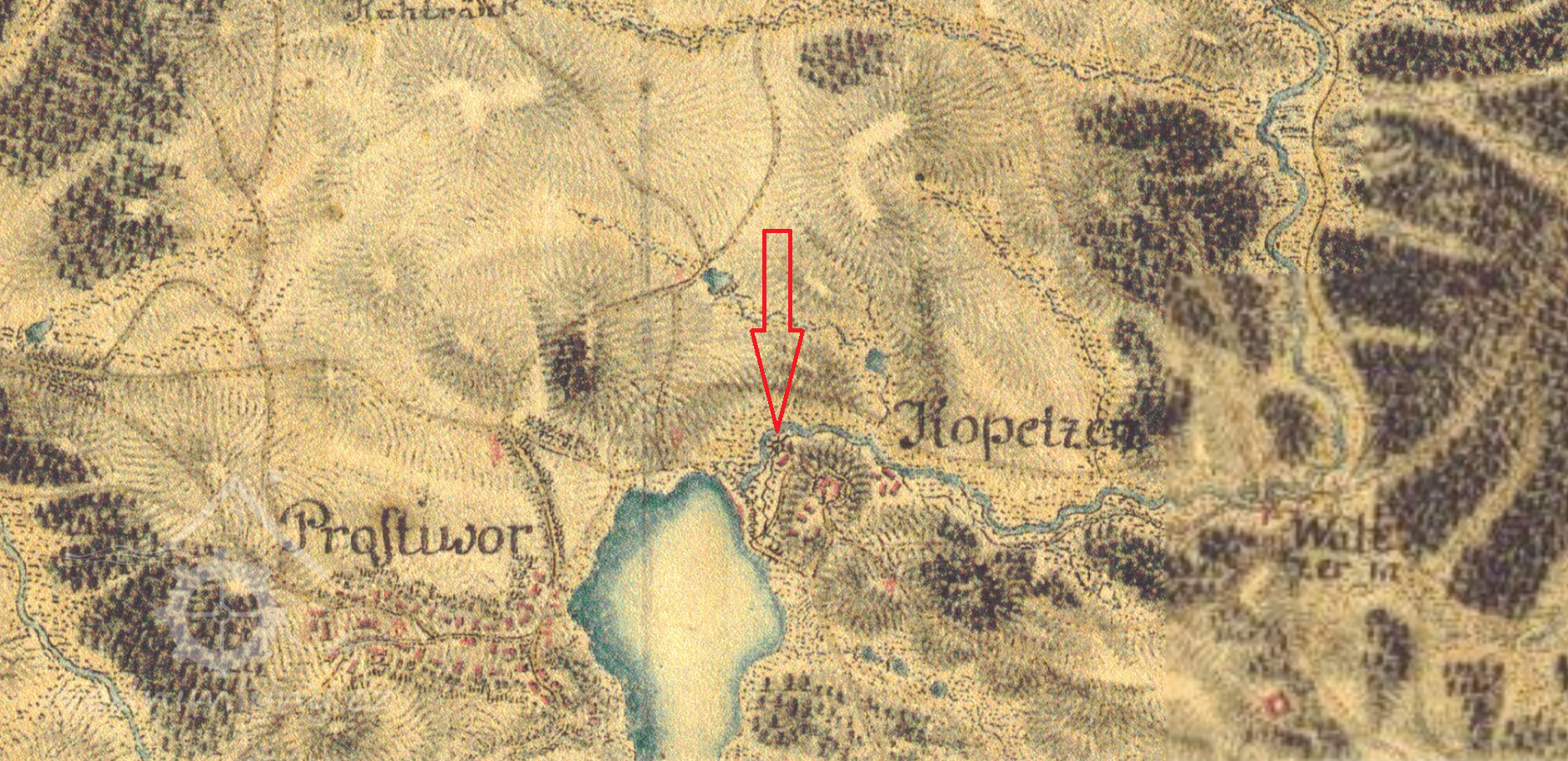 Bis 1805/06 ist die Schlossmühle unter Kopetzen 6 geführt, danach Kopetzen 5. Die Standesfälle sind in der Pfarre Prostibor.