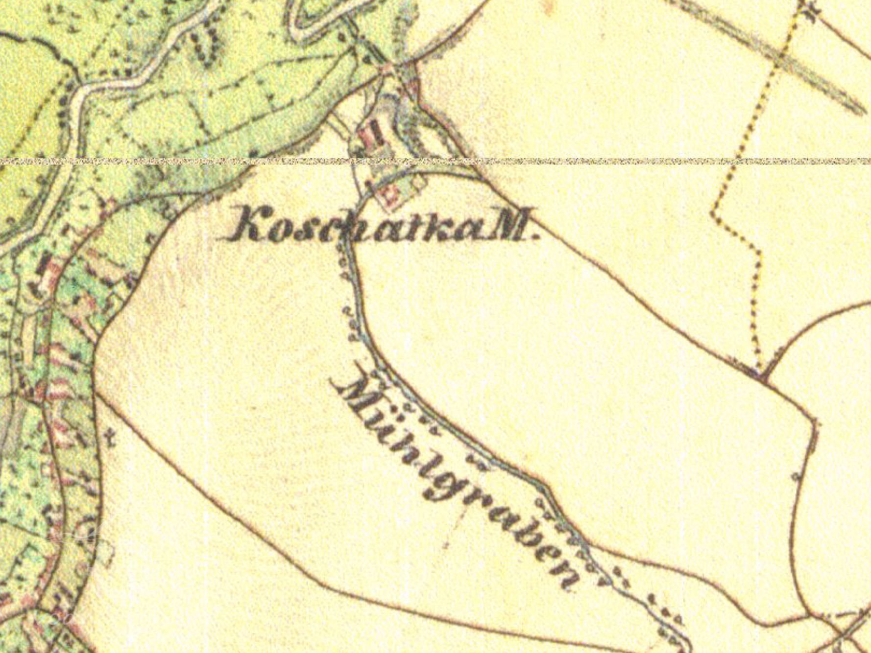 První zmínka se vztahuje k roku 1776, kdy Košatský mlýn (mlýn však stojí na katastru Petřvaldíka) či mlýn v Zimném dole prodala kapitula Jiřímu Kubíčkovi. Mlynář byl zproštěn roboty, za to však byl povinen odvádět 57 zl. čtvrtletně na mlecí činži do vrchnostenských důchodů. Kdyby mlýn prodal, byl povinen 10 % kupní ceny odvést vrchnosti, dále musel platit vrchnímu na přídavku 3 zl. a kancelářskému 30 kr. ročně. Byl též povinen veškeré deputátní obilí, jakož i slad pro panský pivovar v Petřvaldě mlíti zdarma.