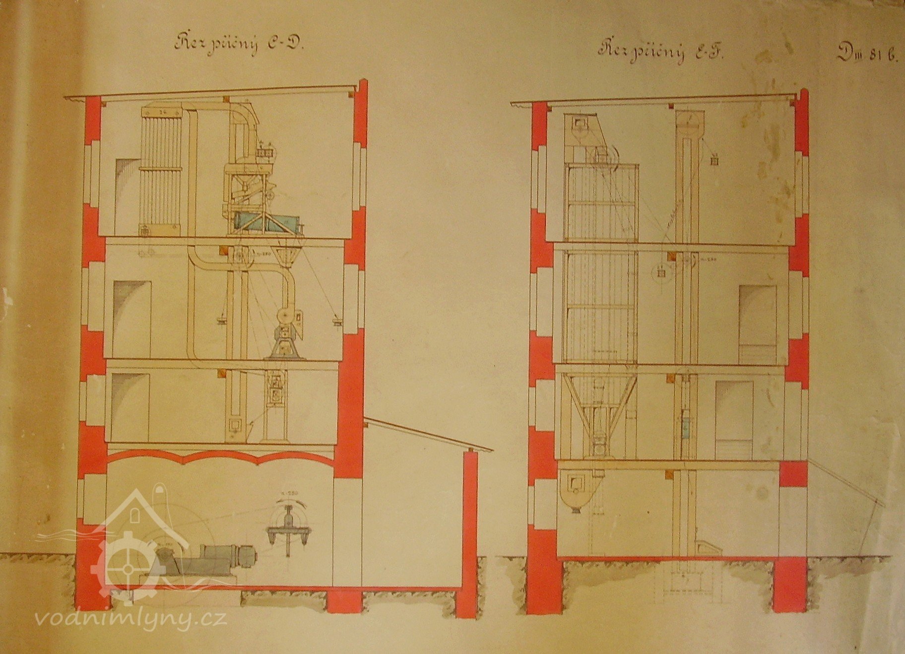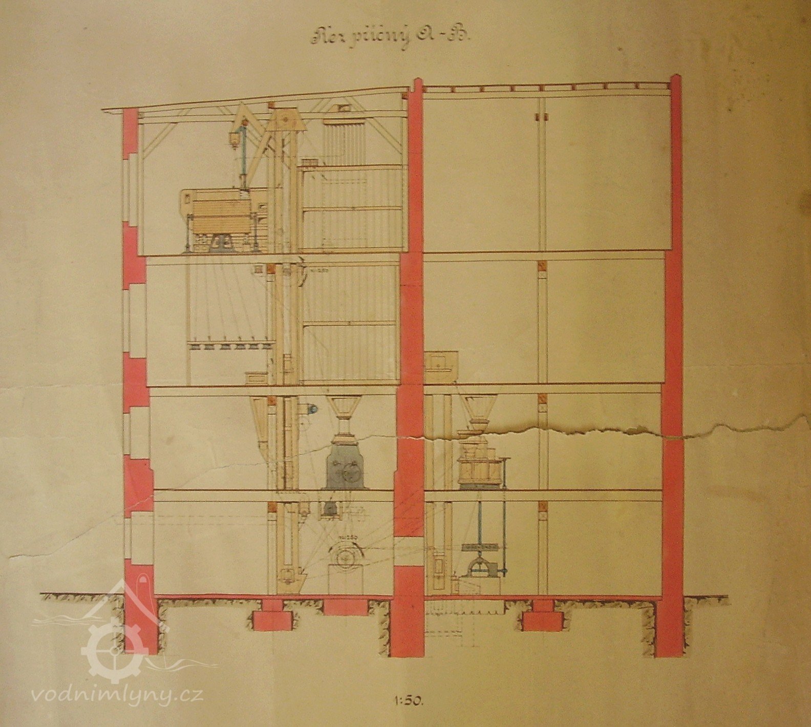 Příčný řez mlýnicí v úrovni reformy. Soukromá sbírka, před 1910, © autor neznámý
