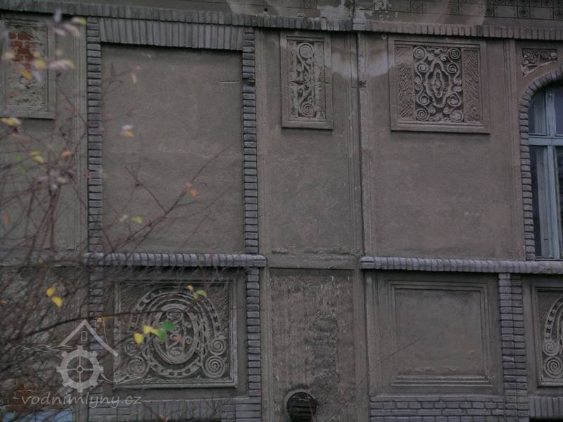 Detail fasády, 2011, © Eva Spárová, (Prvky na obrázku: plastická omítková výzdoba fasád a štítů)