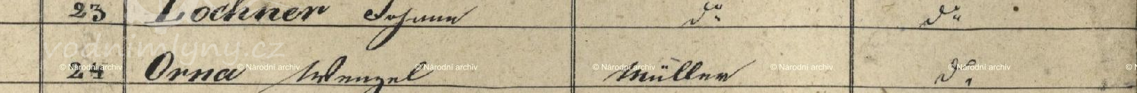 Od konce 18. století seděl na mlýnu rod Ornů. Nejstarším známým mlynářem z tohoto rodu je jistý Martin Orna narozen v Lažanech v roce 1760.