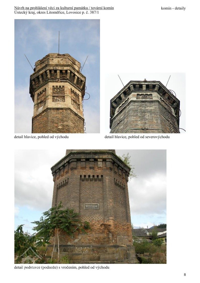 Je zároveň symbolem a jedním z historických dokladů průmyslového vzestupu Lovosic, potažmo celého Ústeckého kraje. V případě jeho prohlášení za nemovitou kulturní památku by se stal, vedle dvou kostelů, zámku a jednoho památníku, pátou a nutno říct výrazně signifikantní památkou města. Komín má i potenciál pro současné využití, jako orientační bod (poutač) a součást panoramatu města.