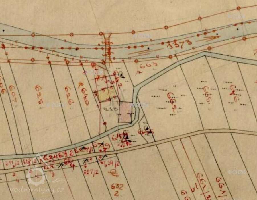 Popis1930: 1 kolo na svrchní vodu, hltnost 0,2 m3/s, spád 2,8 m, výkon 4,8 HP
