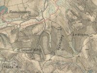u dřevěné lávky přes Juhyni zachovalý po obvodu i po stranách křesaný kámen z krupníku