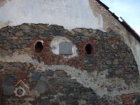 Plasticky zdobené nároží mlýna, 2007, © Šimek, (Prvky na obrázku: plastická omítková výzdoba fasád a štítů)