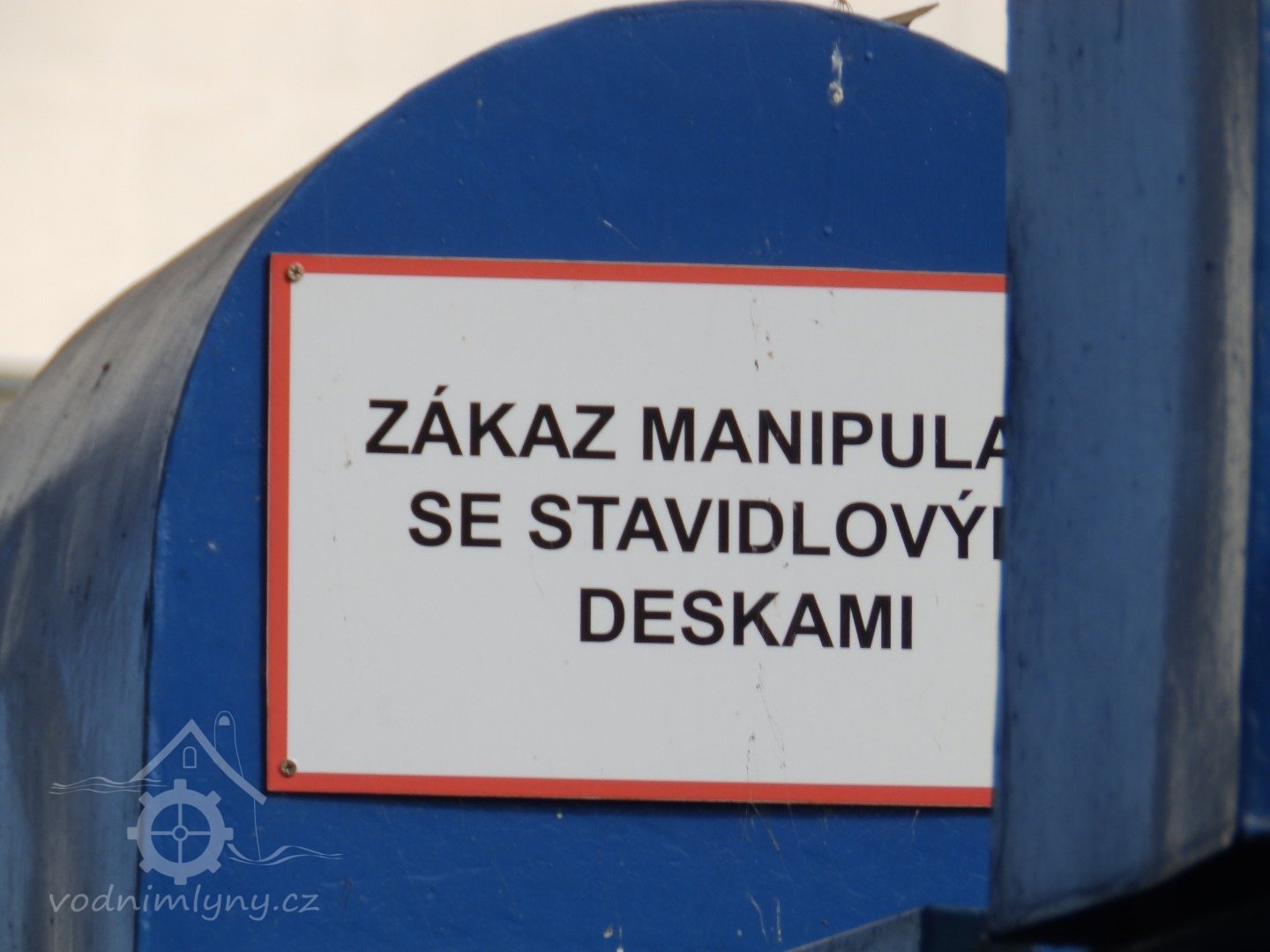 Výstražná tabule na jezu, 2019, © doxa