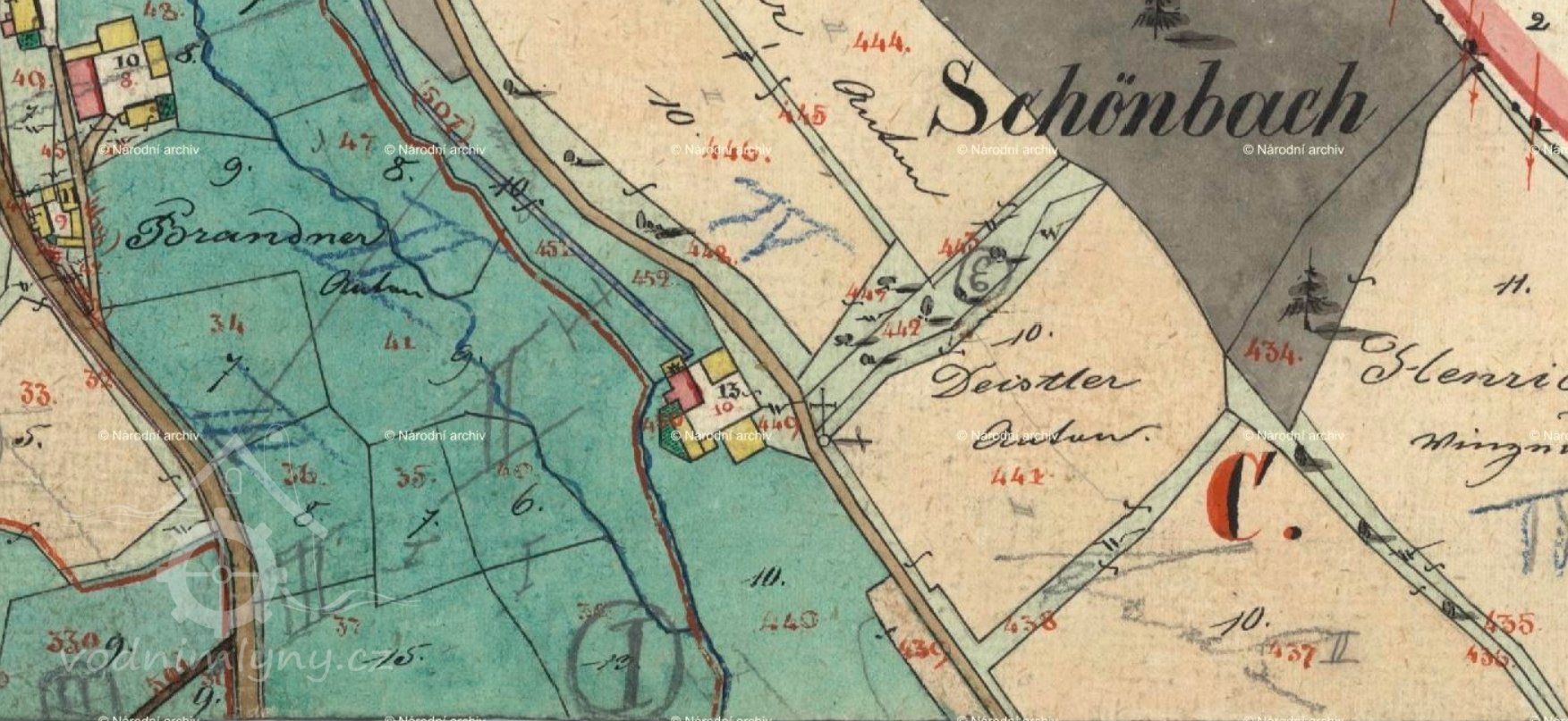 Originální mapa stabilního katastru, výřez, 1824 - 1843, © viz archivnimapy.cuzk.cz