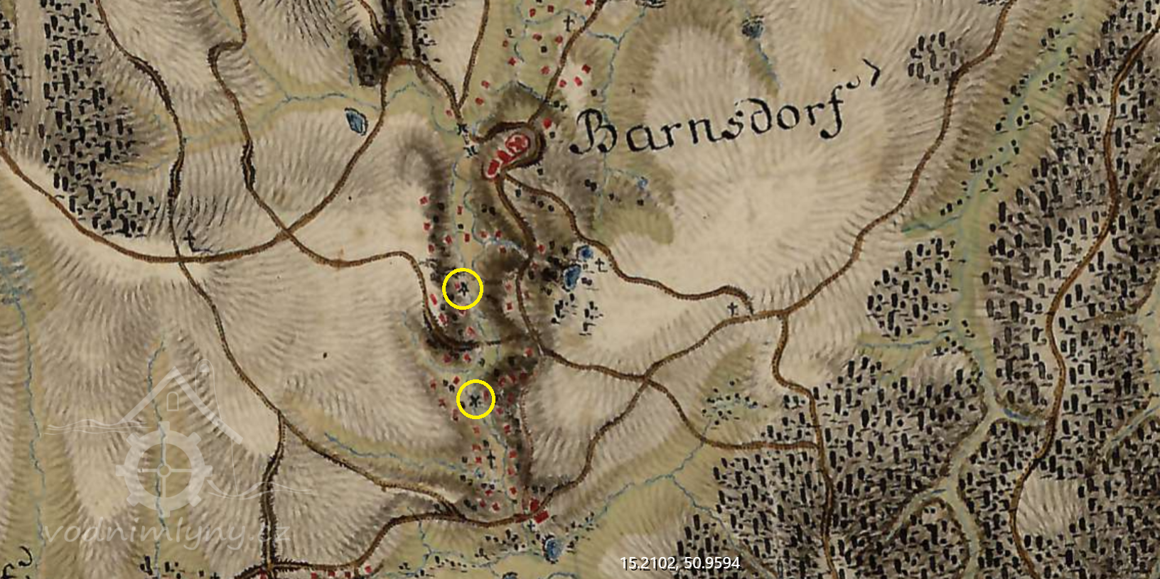 Mapa vodních mlýnů