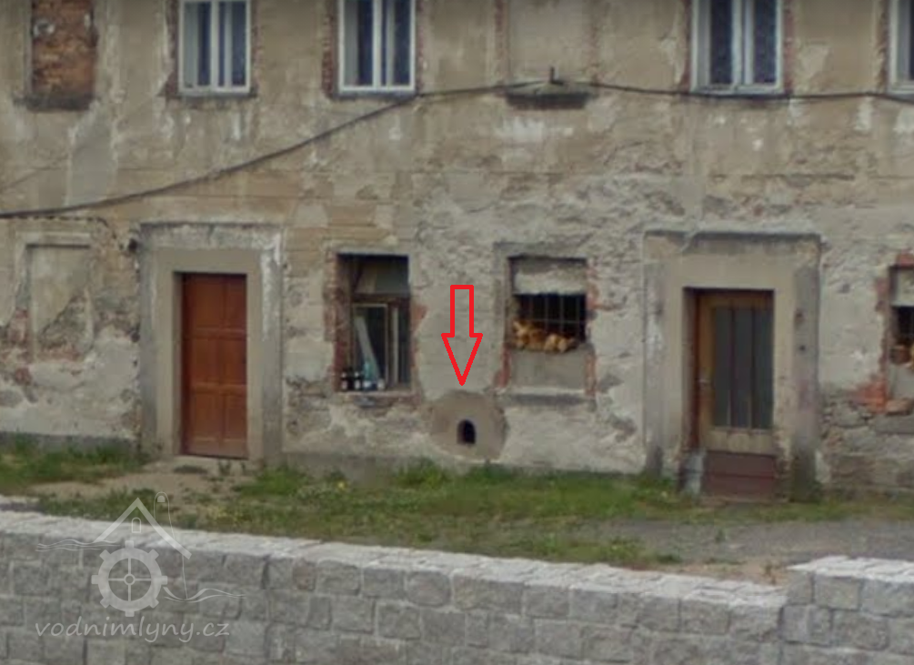 Detail zazděného mlecího kamene, 07 2014, © google.maps, (Prvky na obrázku: mlecí kámen)