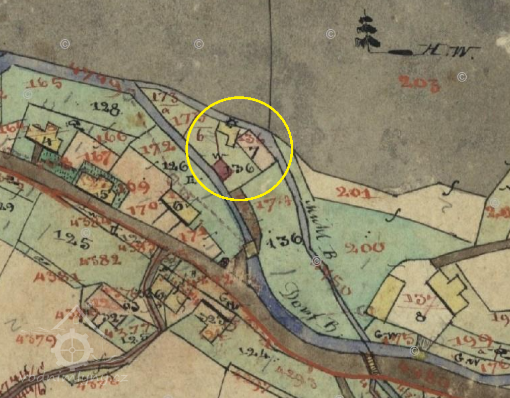Originální mapa stabilního katastru, výřez, 1843, © ags.cuzk.cz/archiv