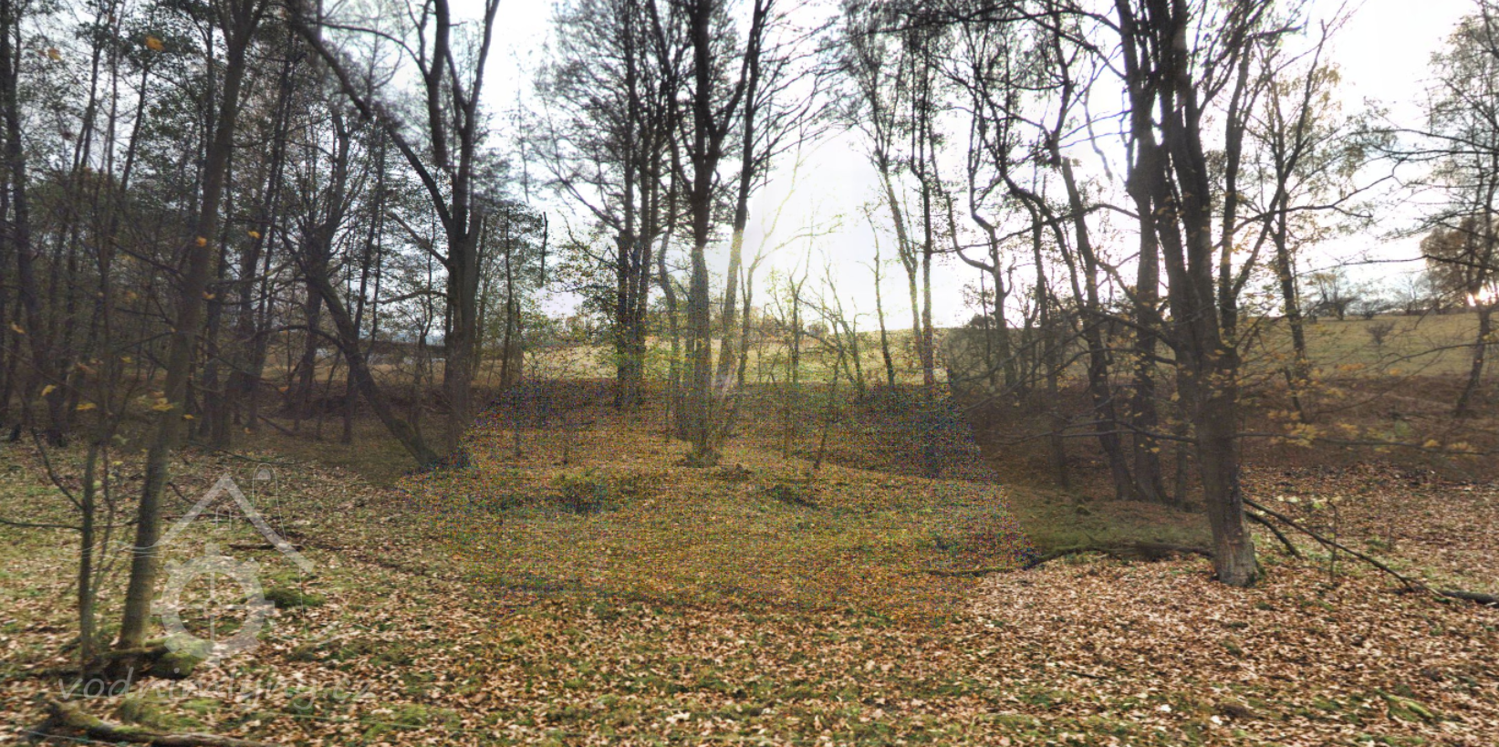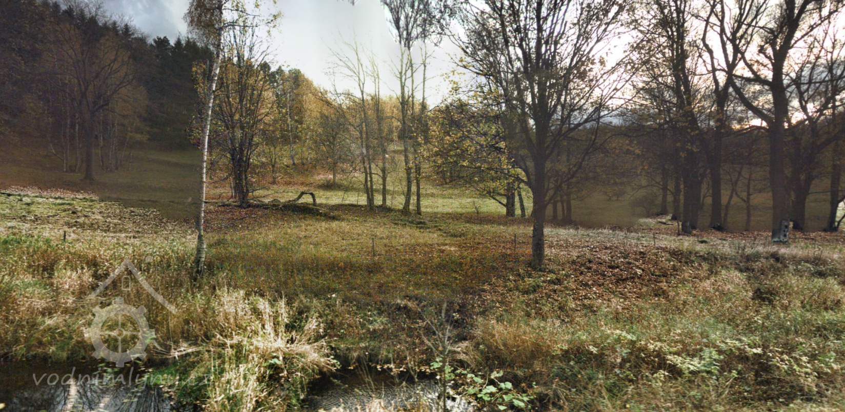 Pohled na mlýniště od severu, patrny terénní nerovnosti, 10 2019, © mapy.cz