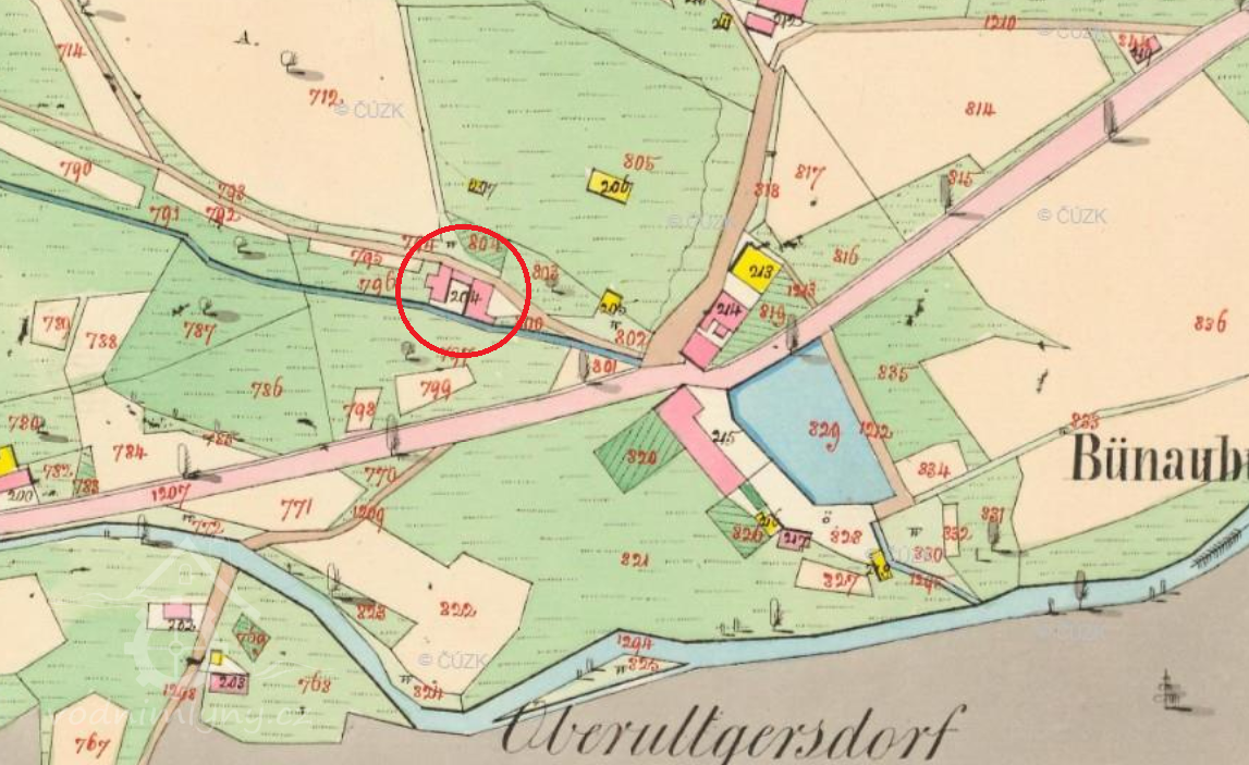 Indikační skica, výřez, 1843, © ags.cuzk.cz/archiv