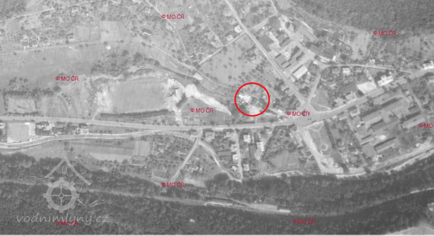 Letecké mapování z 50. let - již bez mlýna, 1953, © GEOPORTAL