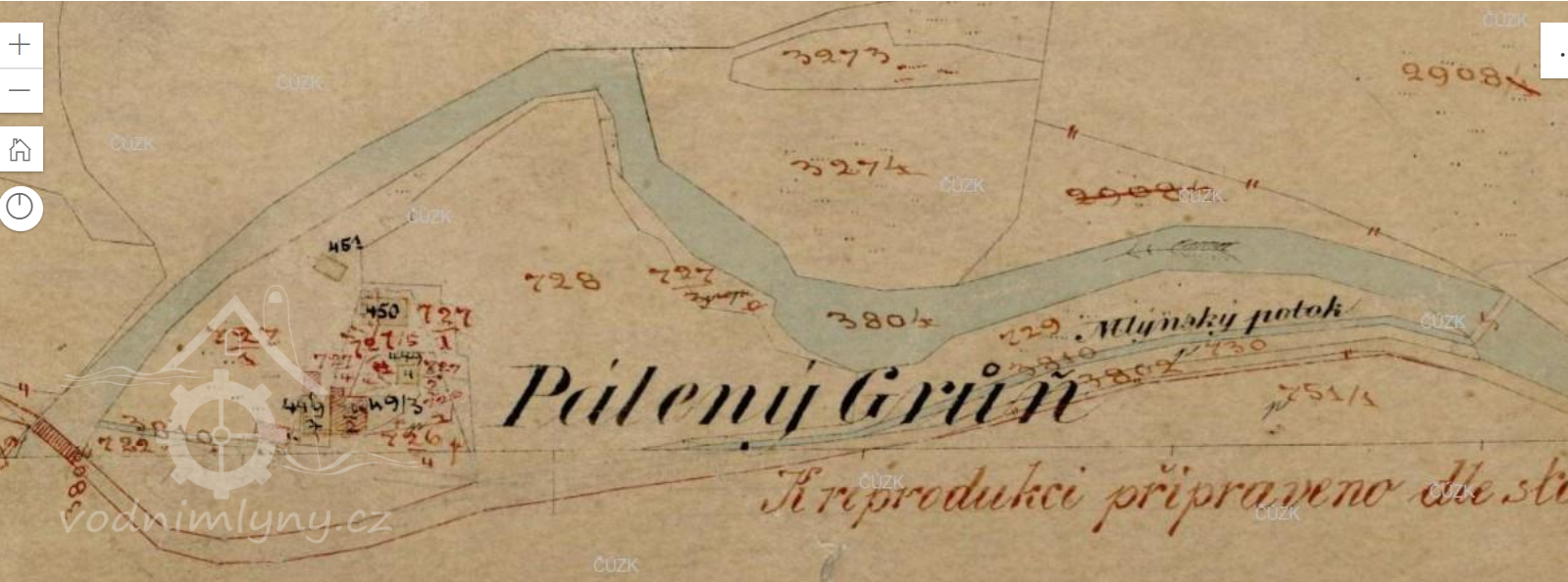 Mapa vodních mlýnů