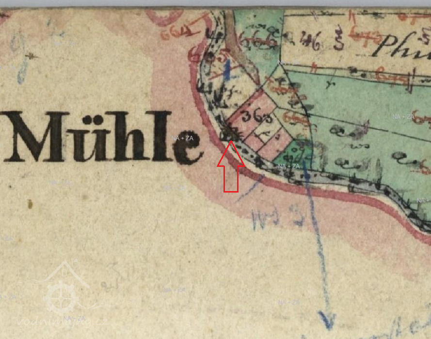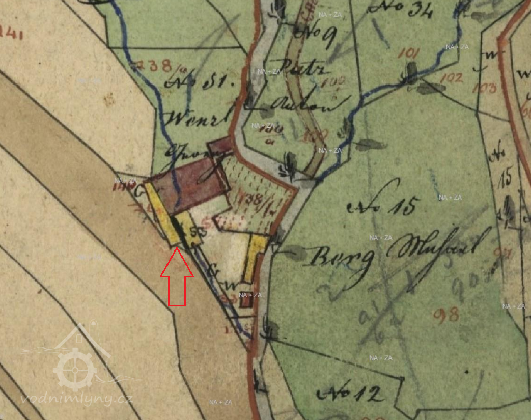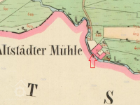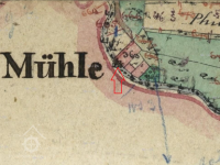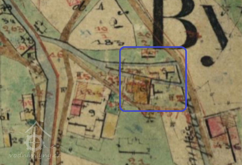 Indikační skica, výřez, budova mlýna, 1843, © http://archivnimapy.cuzk.cz