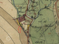 Indikační skica, výřez, dvůr a další budovy usedlosti, 1843, © http://archivnimapy.cuzk.cz
