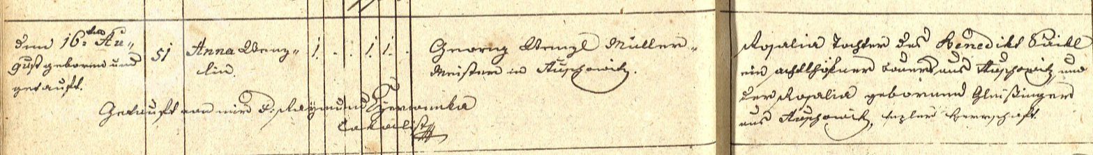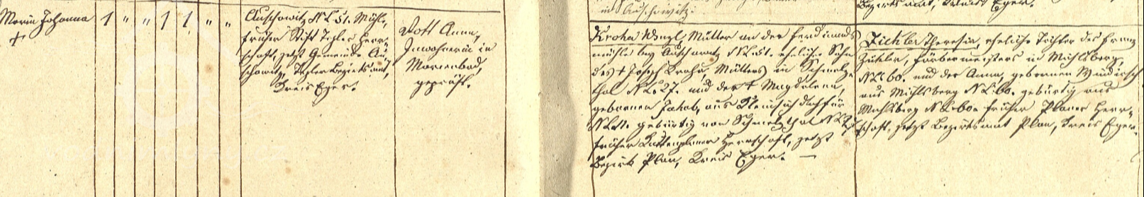 Matriční zápis o narození dcery mlynáře Georga Wenzla, 1822, © https://www.portafontium.eu/