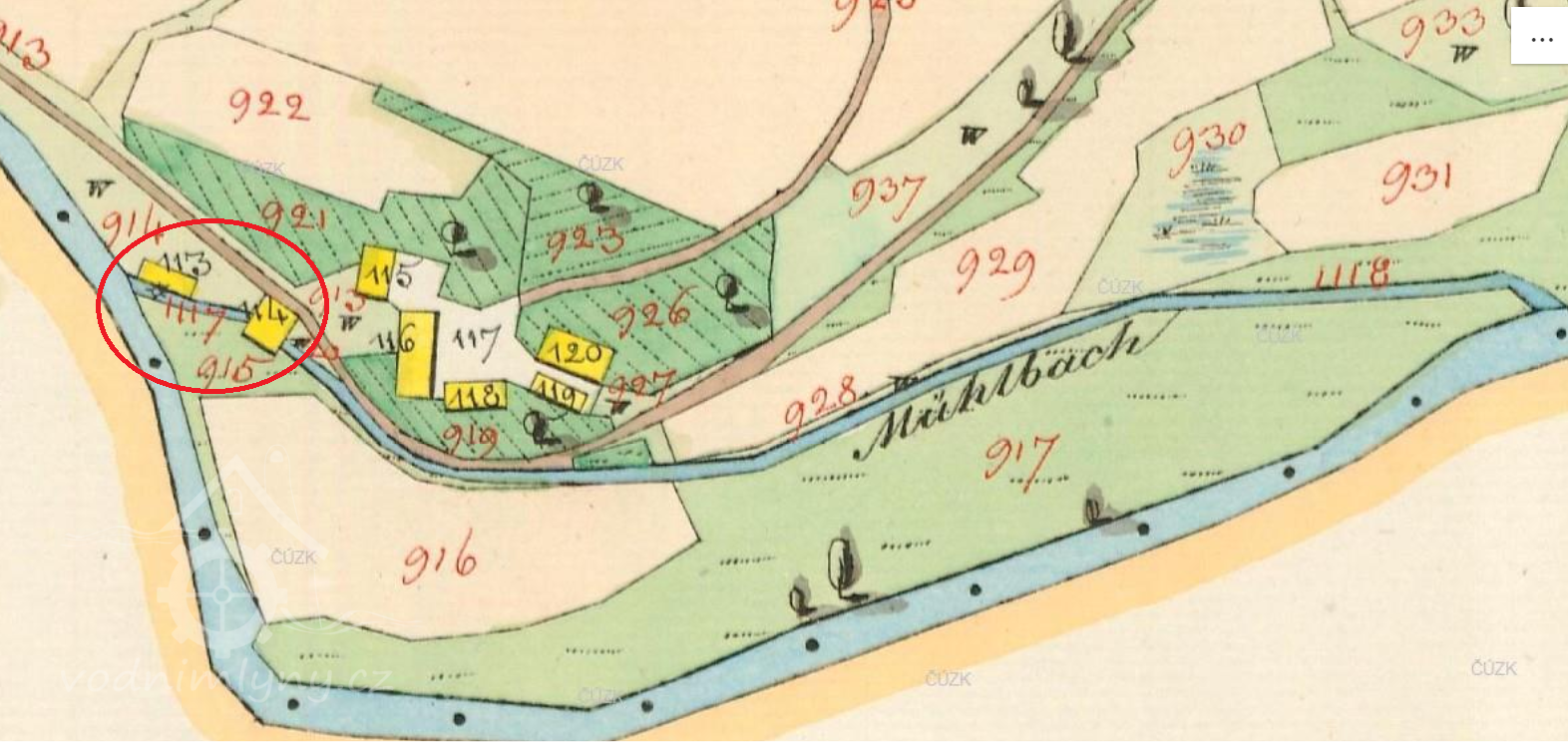 Indikační skica, výřez, 1834, © ags.cuzk.cz/archiv