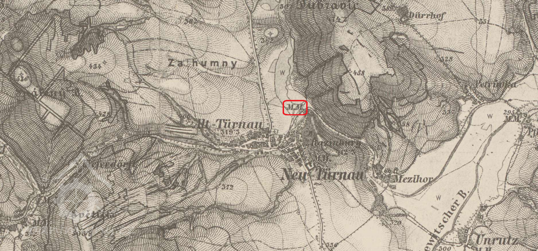 II. vojenské mapování, výřez, 1836-1852, © maps.arcanum.com