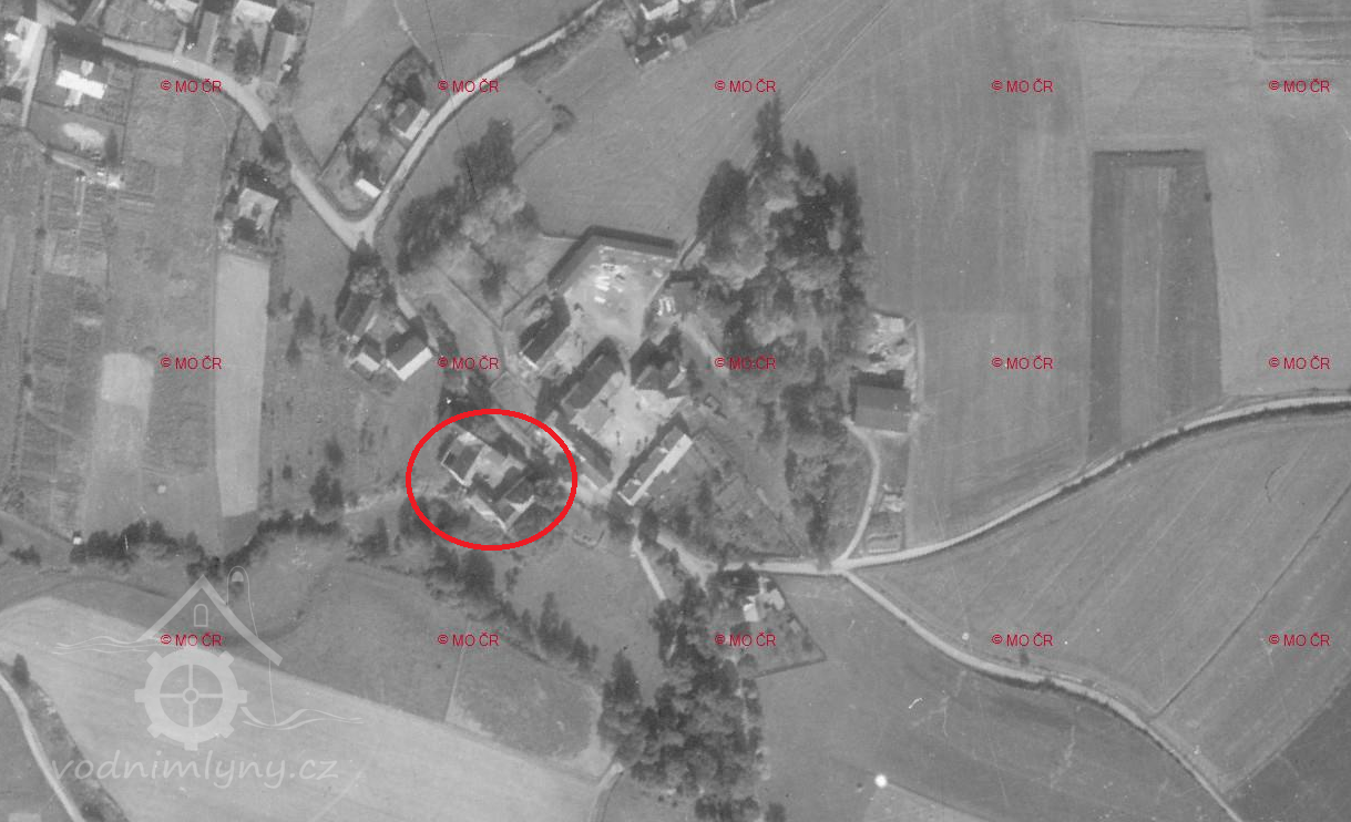 Letecký měřický snímek, výřez, 1953, © ags.cuzk.cz/archiv/