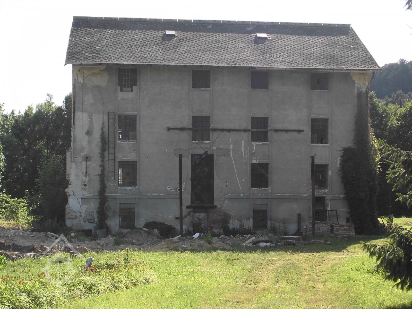 Štít mlýnice a pila, pohled od jihu, 9.5.2016, © pepino