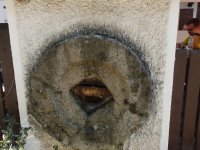 Mlýnský kámen zazděný ve sloupku zahradní restaurace, 2016, © doxa, (Prvky na obrázku: mlecí kámen)