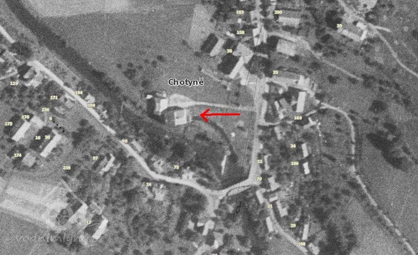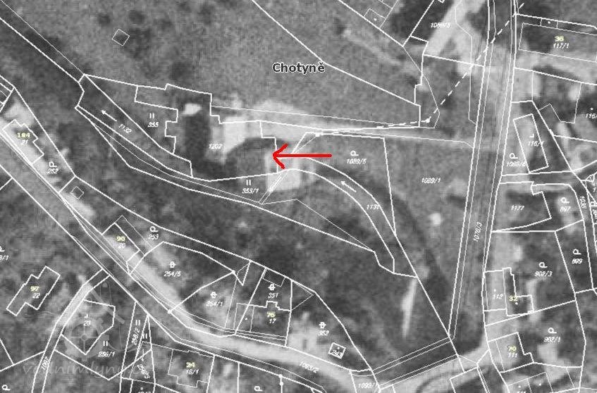 Letecký snímek a katastr-Velký chotyňský mlýn čp.92, 1953, © kontaminace.cenia.cz