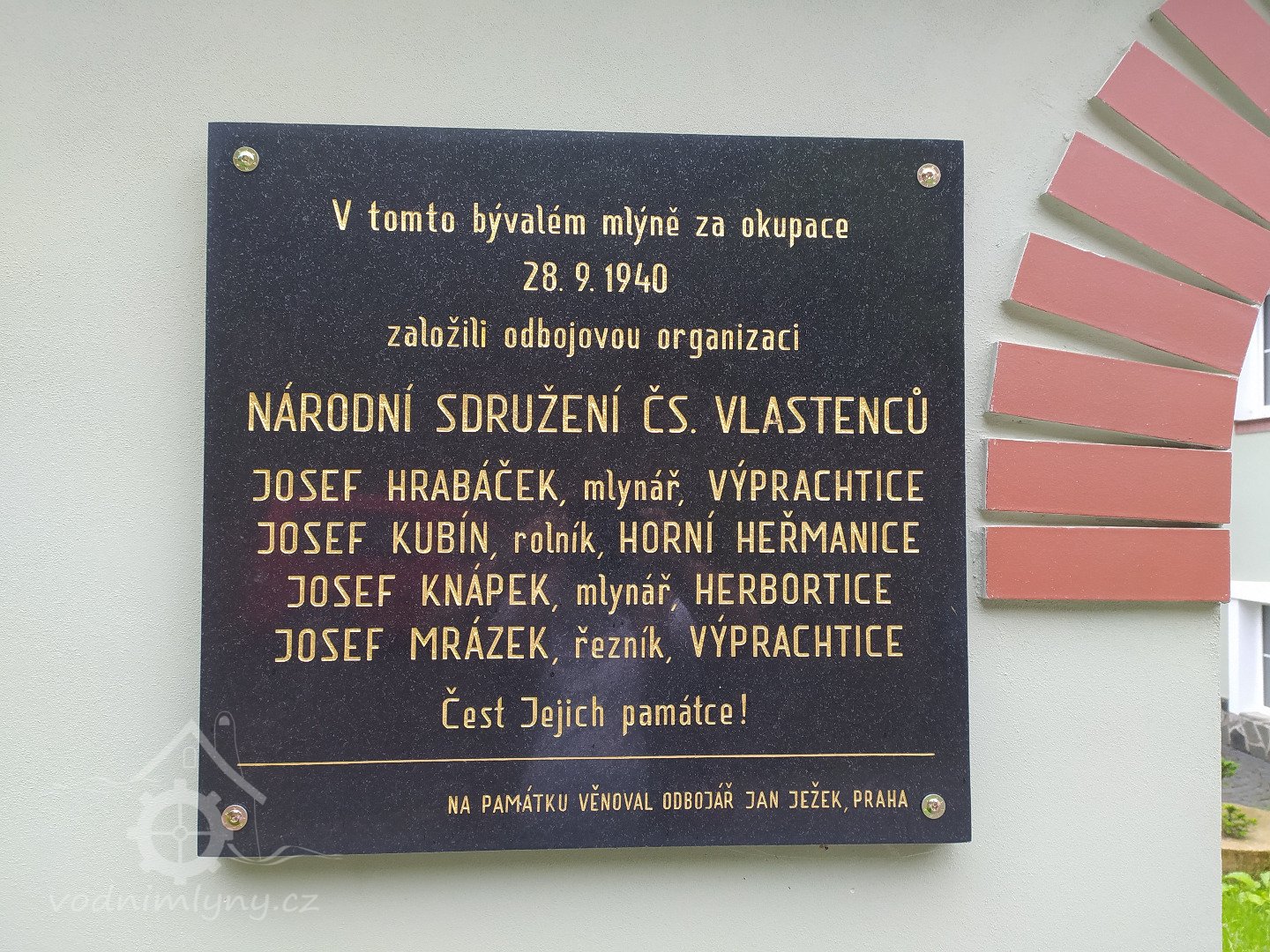 28. 9. 1940 mlynář Josef Knápek na Hrabáčkově mlýně ve Výprachticích spoluzakládal odbojovou skupinu Národní sdružení čs. vlastenců