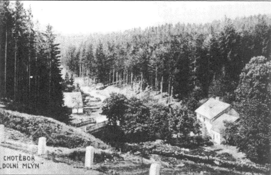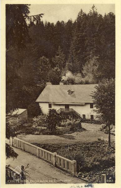 1920, 1930, 1939 - poslední mlynář Josef Dymáček s manželkou Josefou, ke mlýnu patřila pila a hospodářství