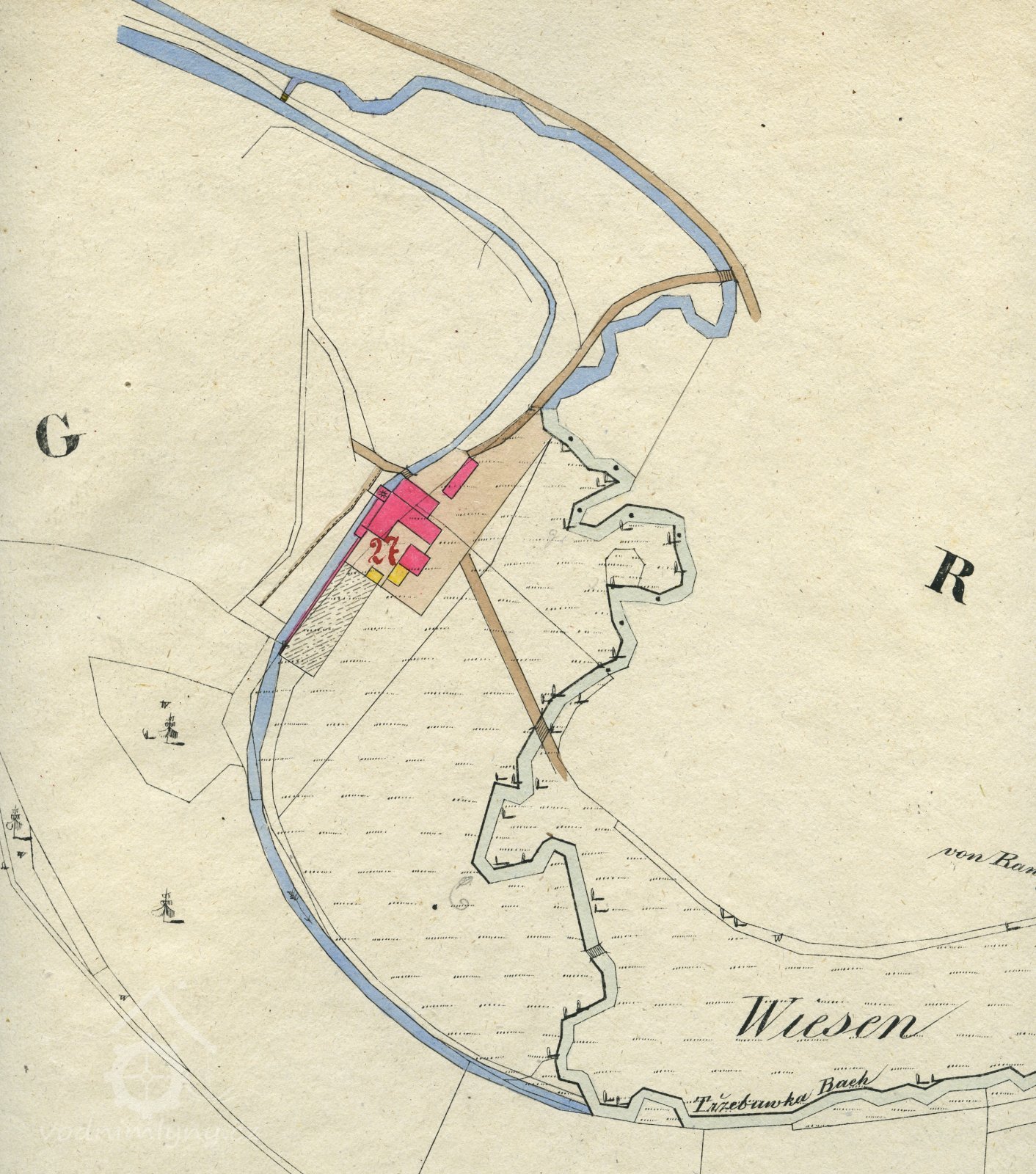 Dvoupatrovou budovu vodního mlýna, přádelny a hostince založil Anton Josef Wondra v pol. 19. stol.