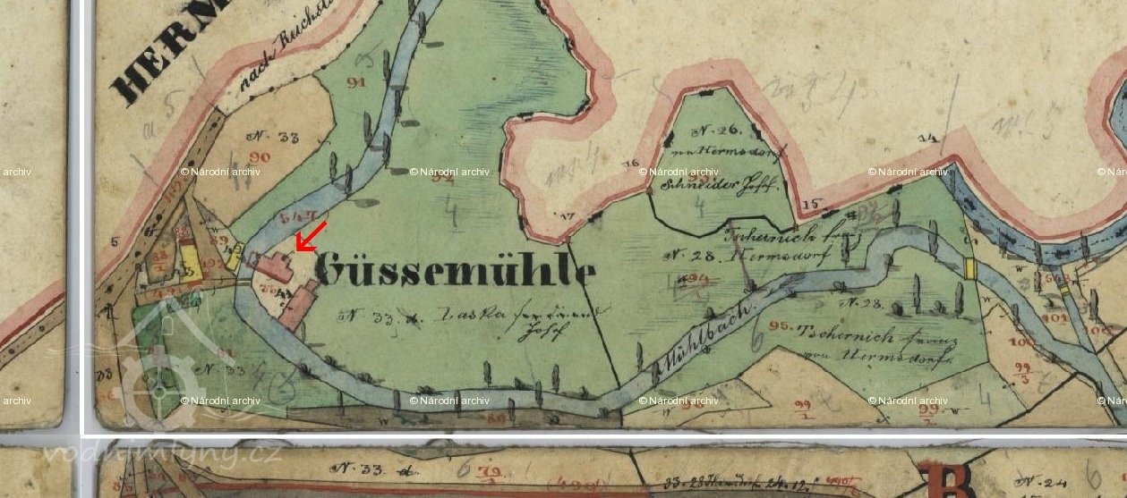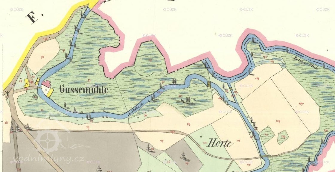 ke mlýnu vedl náhon z Ploučnice cca 250 m dlouhý