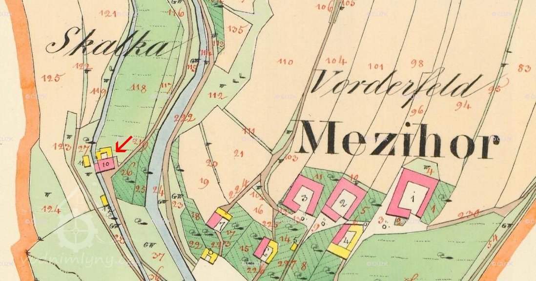 Přestavěný mlýn stojí nedaleko Mezihoří pod železniční tratí na pravém břehu Třebůvky. Mlýn je přestavěn na penzion.