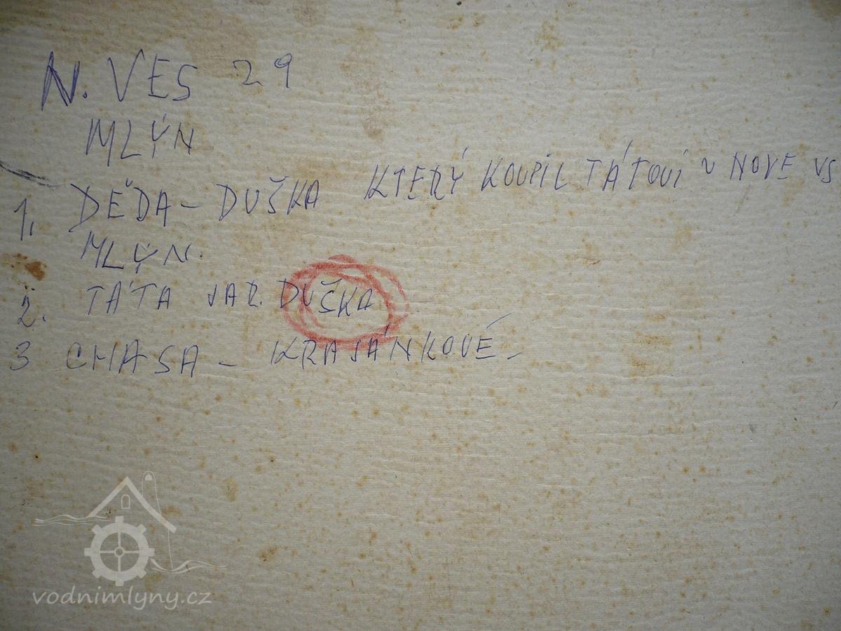 Z rodiny mlynářů Dušků z Nové Vsi žije syn mlynáře Jaroslava Dušky, také Jaroslav Duška, nar. 1931 - na fotografii vpravo.