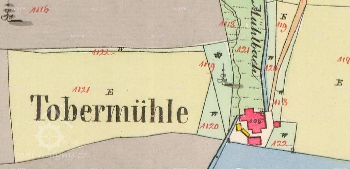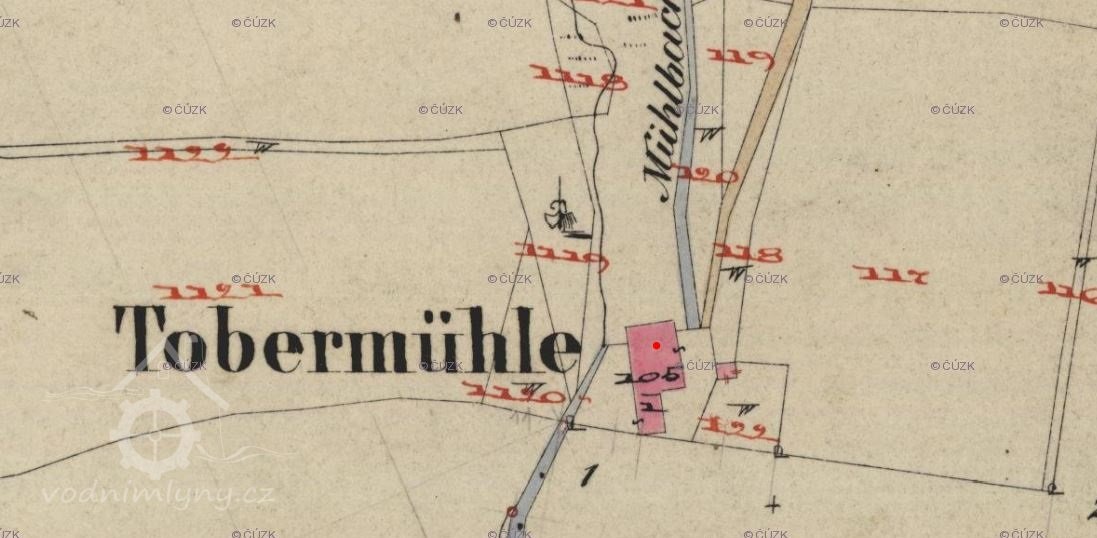 Popis1930: 1 kolo na svrchní vodu, hltnost 0,095 m3/s, spád 4,3 m, výkon 4 HP