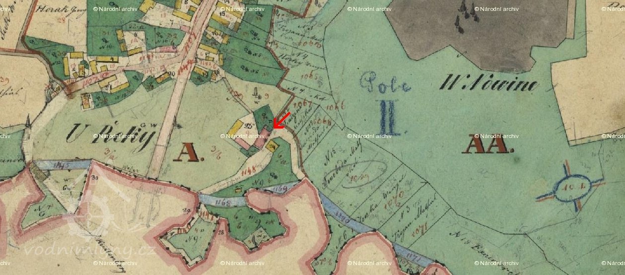 PopisV roce 1930 měl mlýn 3 kola na vrchní vodu, hltnost 0,08 m3/s, spád 1,4 m, výkon 12 HP