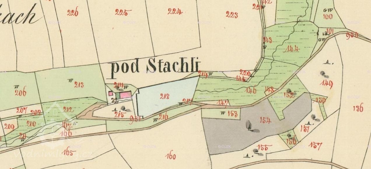 Název Pod štachlí údajně od zatuchlé mouky, kterou zdejší mlynář dodával okolním lidem.