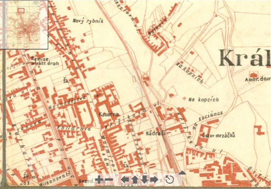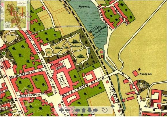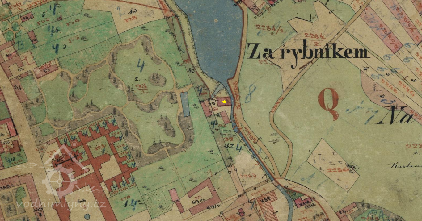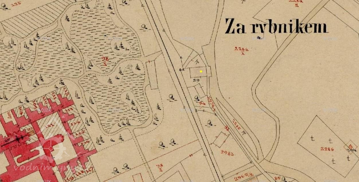 lýn stál pod zrušeným rybníkem v blízkosti původního nádraží Královo Pole. Podle historických map měl dvě menší budovy přibližně kolmo k sobě.