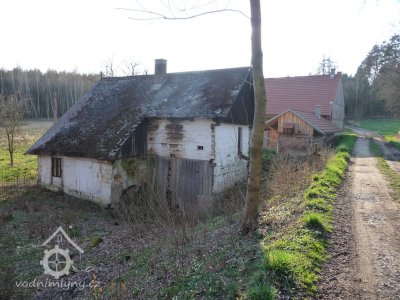 Z boční zdi mlýna vystupuje zlomená hřídel mlýnského kola.