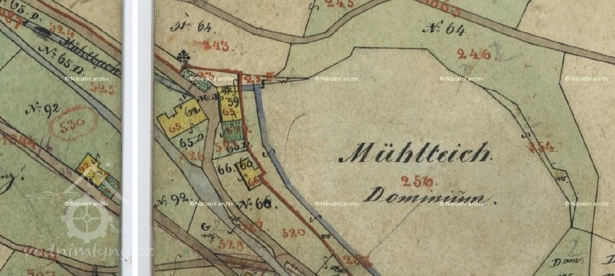 V roce 1930 byl majitelem mlýna Antonín Bedřich Hohlfeld, č.p. 65. V seznamu.... je potok nazýván Rosenbach.