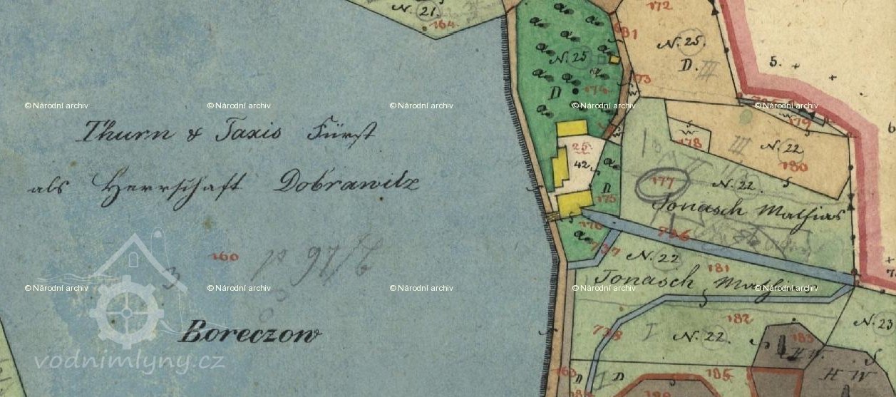 Mlýn stojí o samotě pod hrází Borečovského rybníka nedaleko obce Ujkovice.