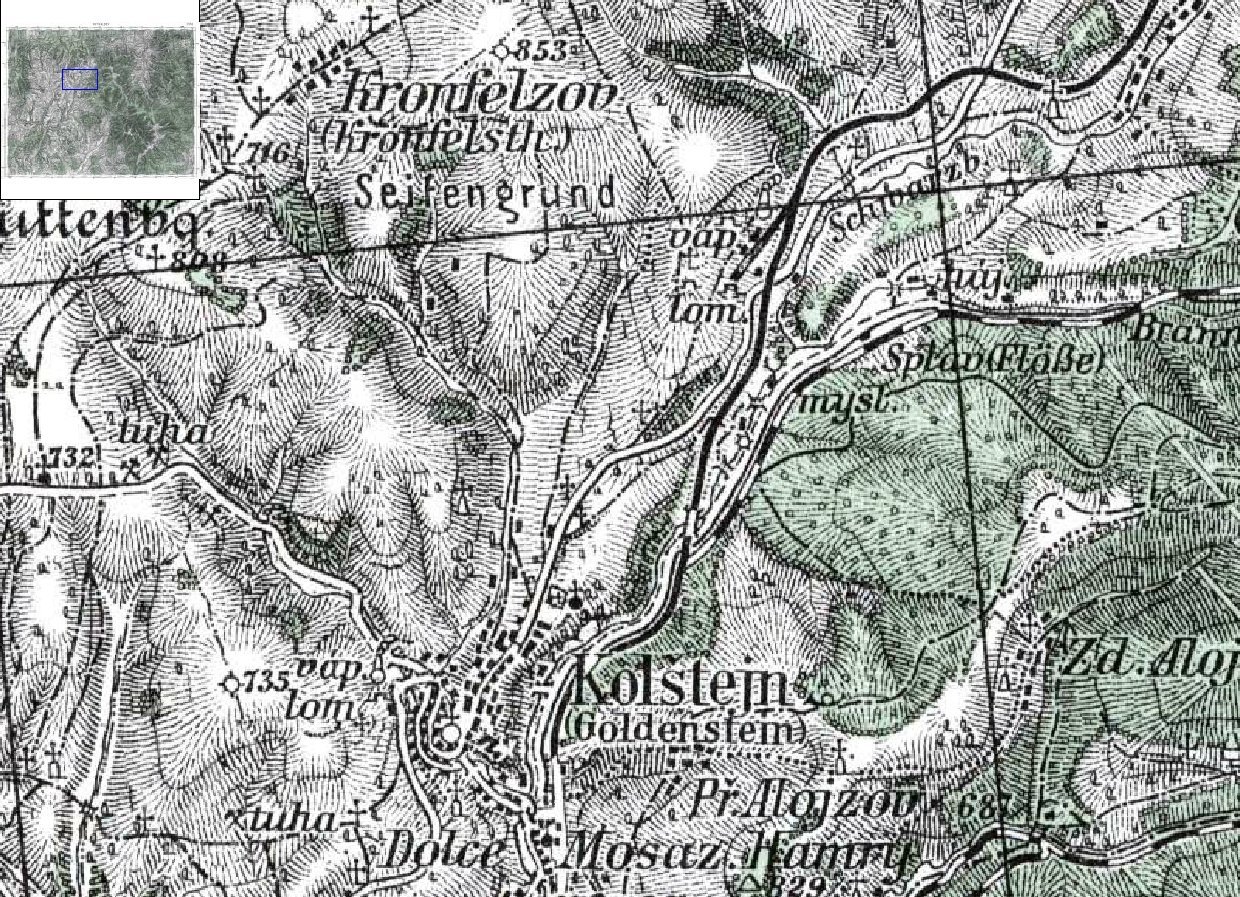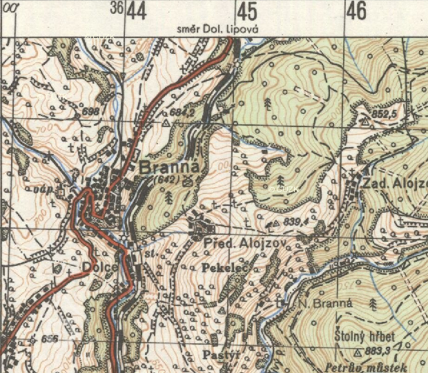 V roce 1930 se městečko Branná jmenovalo Kolštejn, říčka Mittelbordbach.