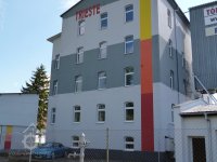 Hlavní budova je čtyřpatrová, menší přistavěné budovy jsou jednopatrové.