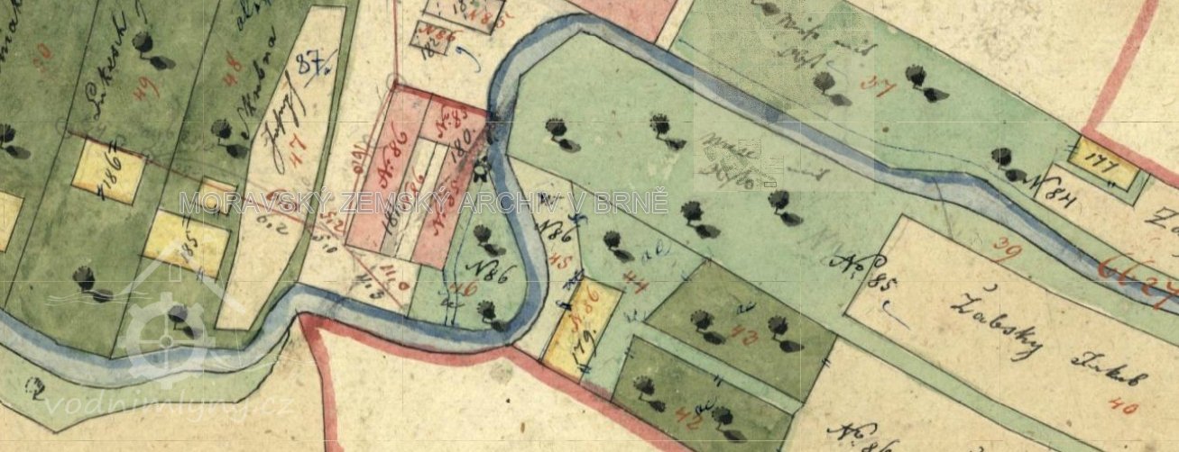 Mlýn je v historických pramenech dělen na dva mlýny - č.p. 85 a č.p.86. Dvojici mlýnů nelze zřetelně rozdělit.